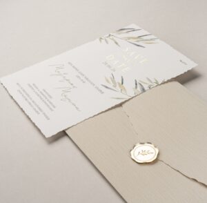 Μοντέρνο προσκλητήριο γάμου με ανάγλυφο φάκελο