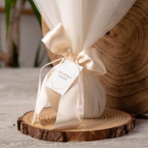 Xειροποίητη τούλινη μπομπονιέρα γάμου με περίτεχνο δέσιμο