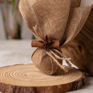 Boho μπομπονιέρα γάμου με λινάτσα, κανέλα και γλυκάνισο