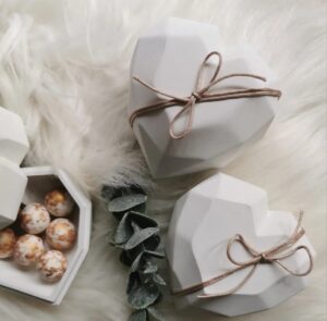 Μπομπονιέρα γάμου μπιζουτιέρα πορσελάνης πολύγωνη καρδιά