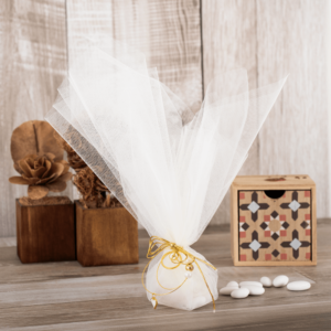 Τούλινη μπομπονιέρα γάμου με περίτεχνο δέσιμο