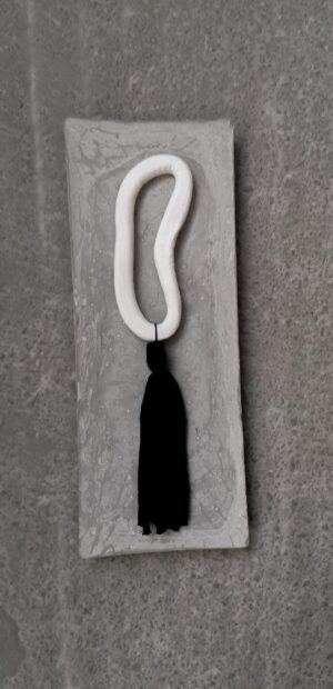 Minimal πήλινη μπομπονιέρα γάμου με χειροποίητη φούντα