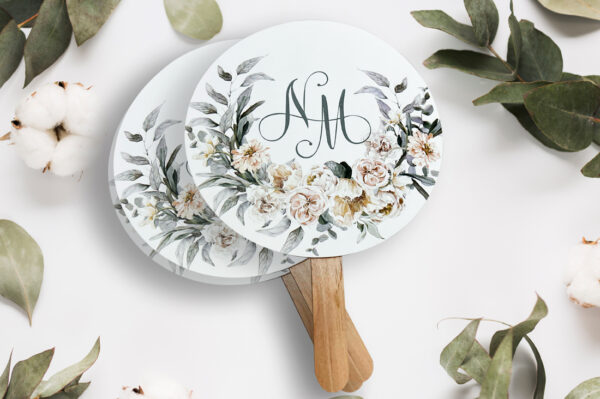 Βεντάλια με floral μοτίβο σε στρογγυλό κοπτικό και ξύλινη βάση.