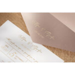 Κομψό προσκλητήριο γάμου σε nude απόχρωση με χρυσοτυπία.
