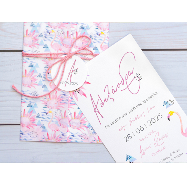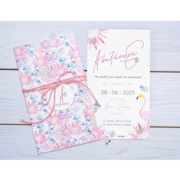 Μοντέρνο προσκλητήριο βάπτισης με floral τυπωμένο ριζόχαρτο