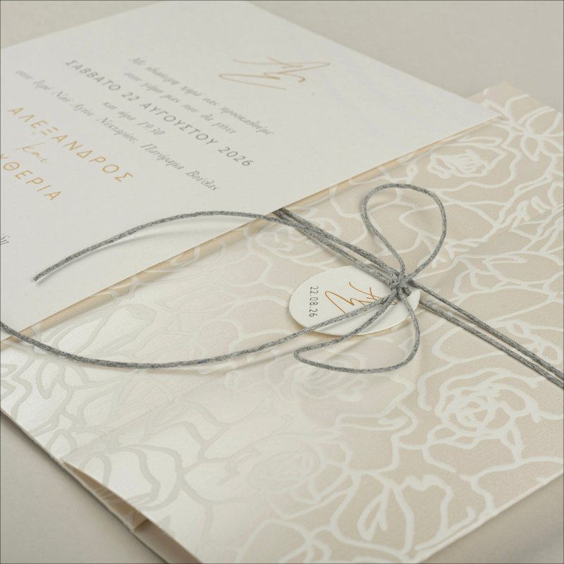 Μοντέρνο προσκλητήριο γάμου με ανάγλυφο φάκελο
