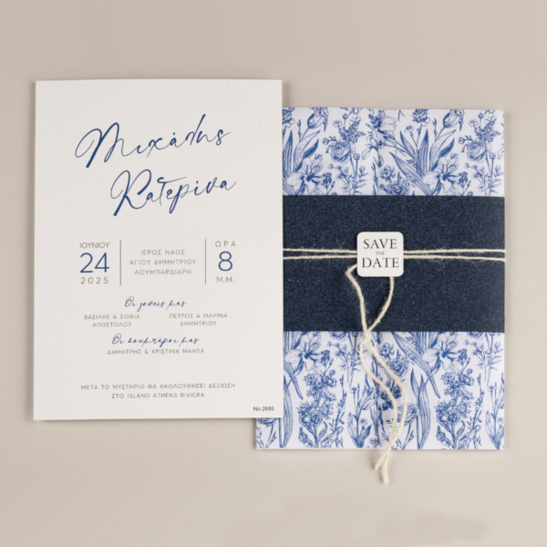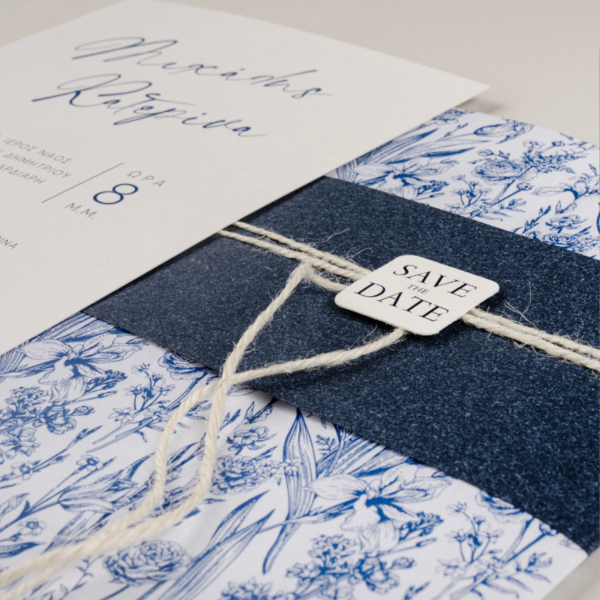 Μοντέρνο προσκλητήριο γάμου σε μπλέ απόχρωση