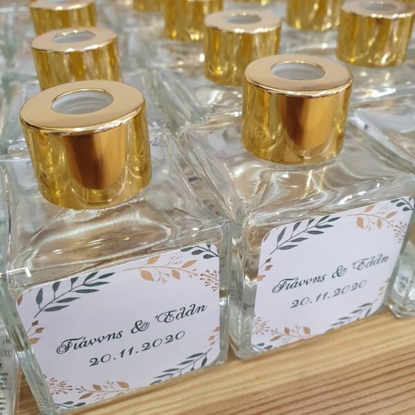 Μπομπονιέρα γάμου αρωματικό χώρου με ξύλινα sticks δεμένο με περίτεχνο δέσιμο.