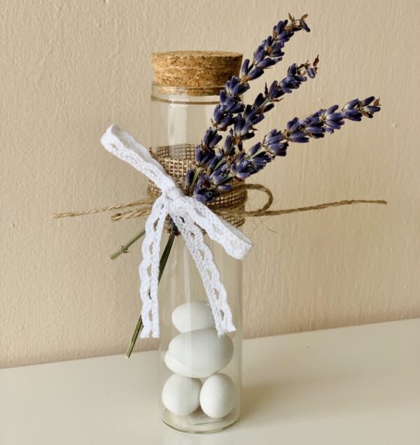 Μπομπονιέρα γάμου γυάλινος σωλήνας με λεβάντα
