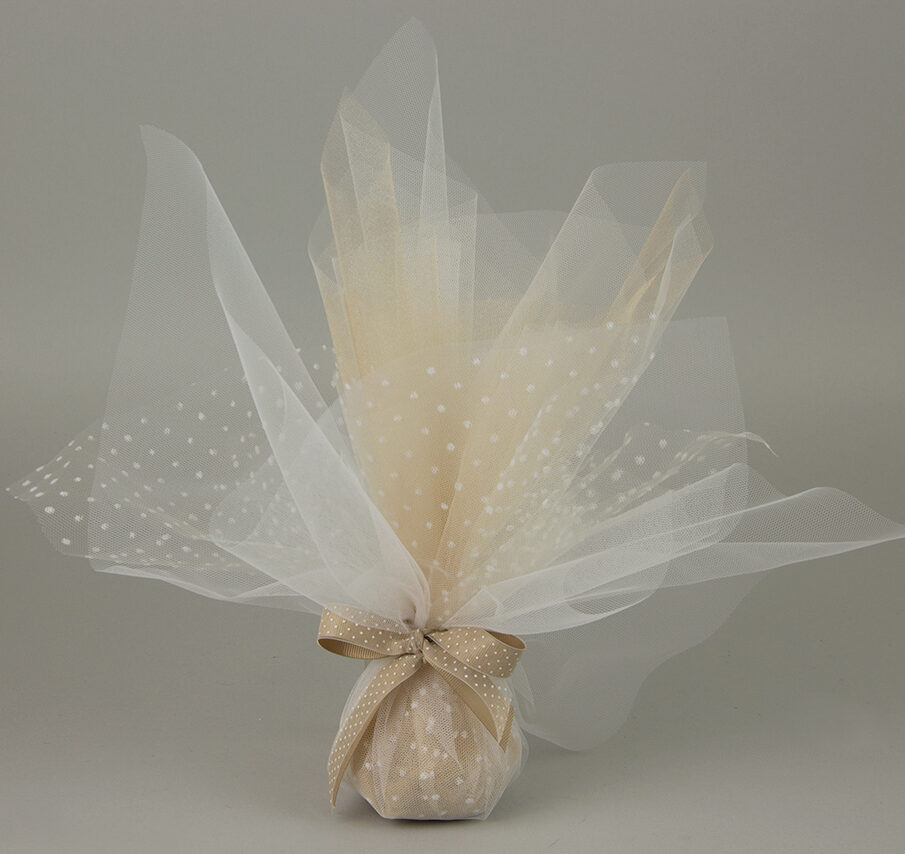 Μπομπονιέρα γάμου πουά τούλι και εσωτερικό τούλι με περίτεχνο δέσιμο