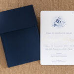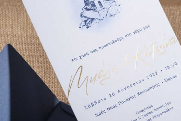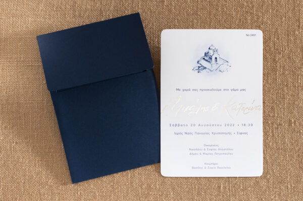 Μinimal καλοκαιρινό προσκλητήριο γάμου σε blue navy απόχρωση.