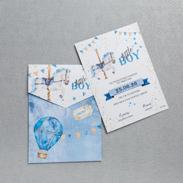 Προσκλητήριο βάπτισης με θέμα το καρουζέλ