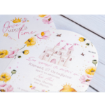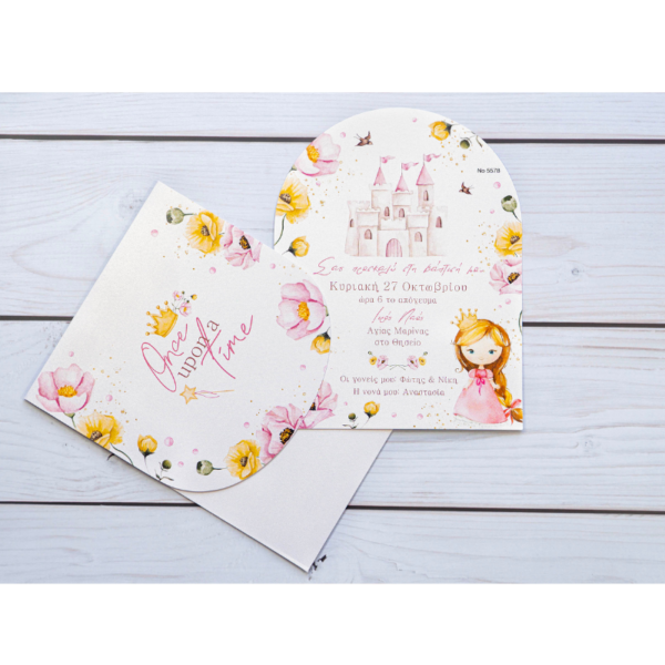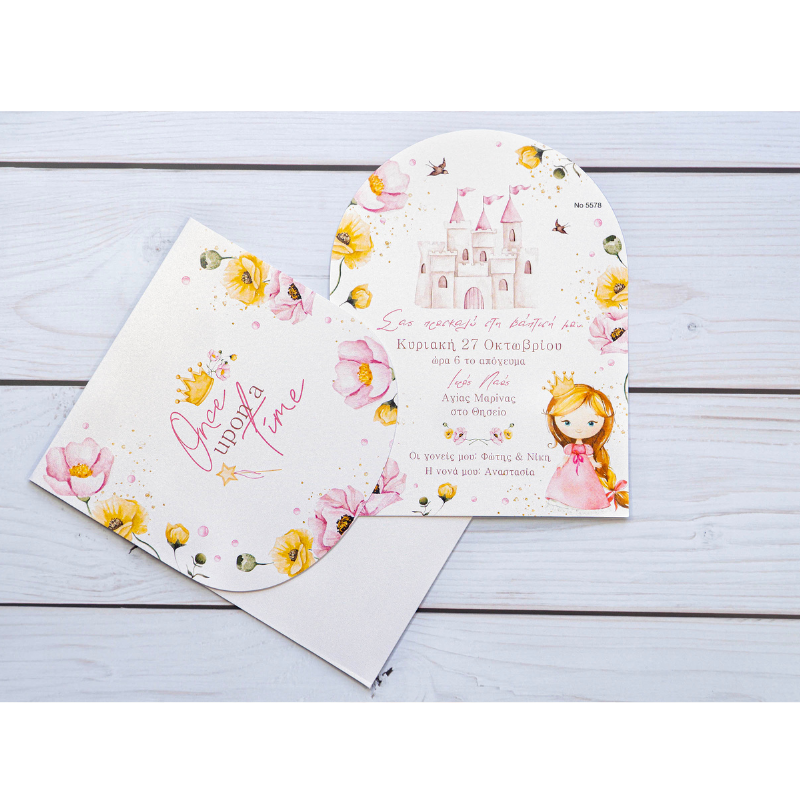 Προσκλητήριο βάπτισης με μοντέρνο κοπτικό, τυπωμένο φάκελο και θέμα το κάστρο