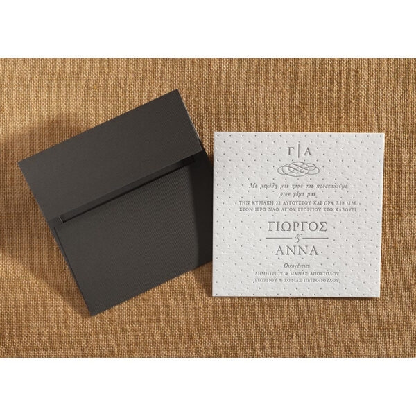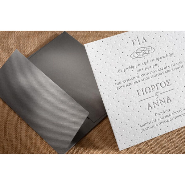 Προσκλητήριο γάμου βαμβακερό dots σε απόχρωση Off white και γκρί.