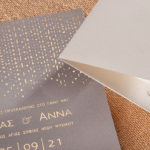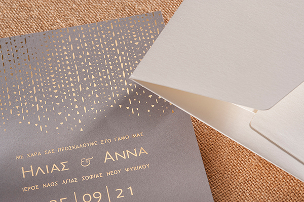 Μοντέρνο προσκλητήριο γάμου με μοναδικό συνδυασμό ιβουάρ και γκρί.