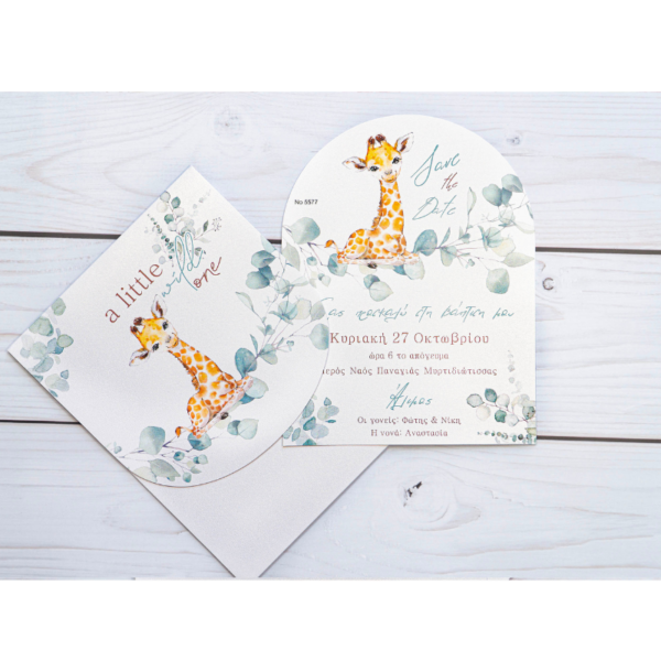 Προσκλητήριο γάμου με θέμα καμηλοπάρδαλη