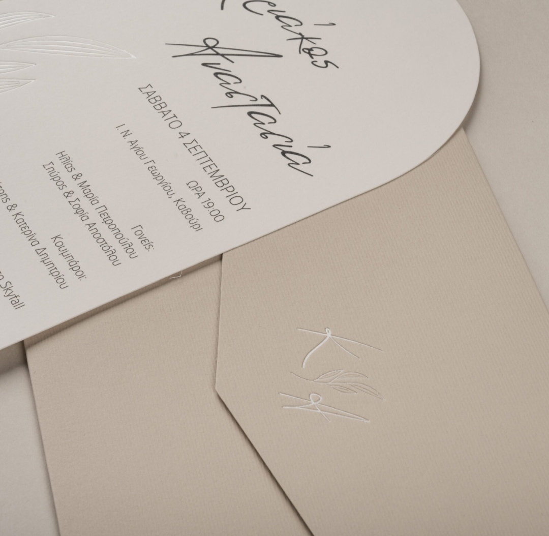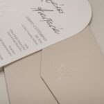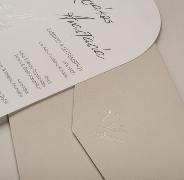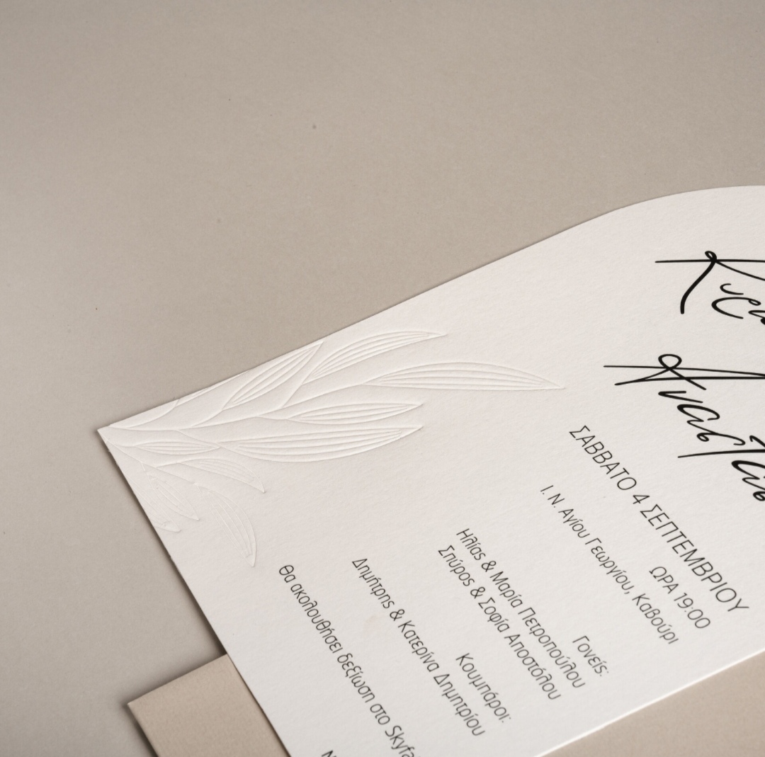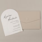 Προσκλητήριο γάμου με μοντέρνο κοπτικό σε σχέδιο καμάρας