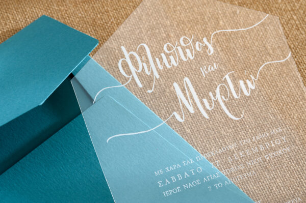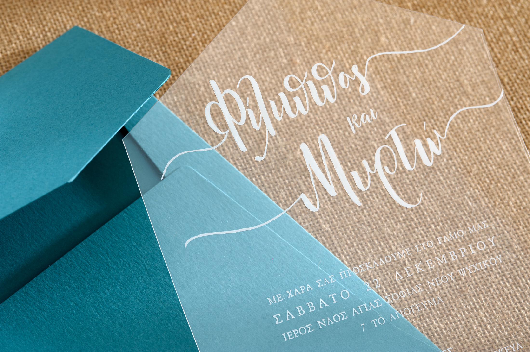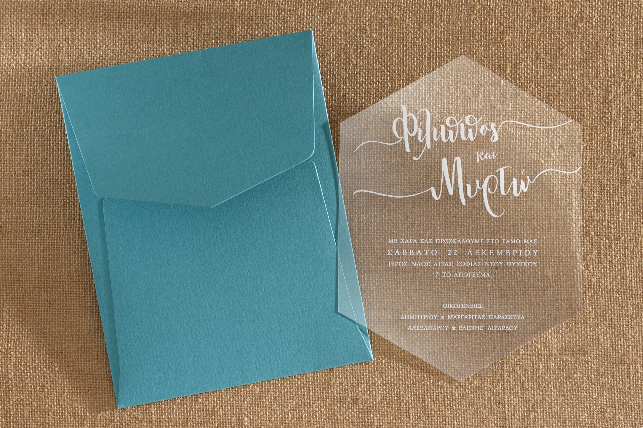 Προσκλητήριο γάμου μορφοκοπή με διαφάνεια.
