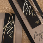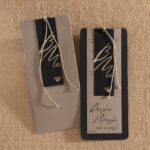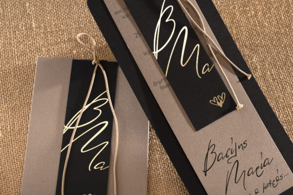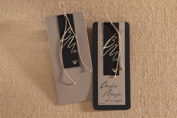 Προσκλητήριο γάμου σε καφέ απόχρωση και απόχρωση πούρου σελιδοδείκτης με περίτεχνο δέσιμο.