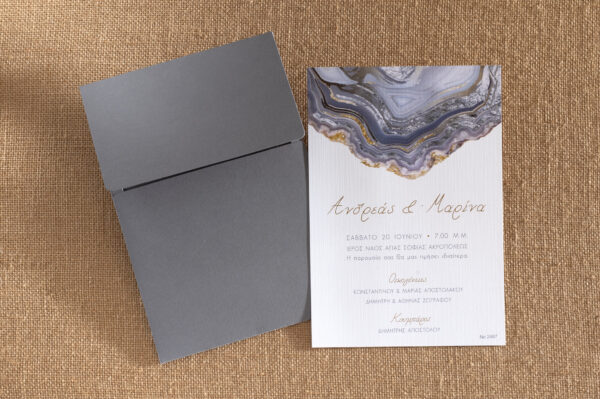 Προσκλητήριο γάμου grey watercolour σε γκρί αποχρώσεις.