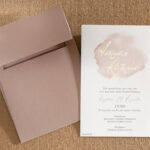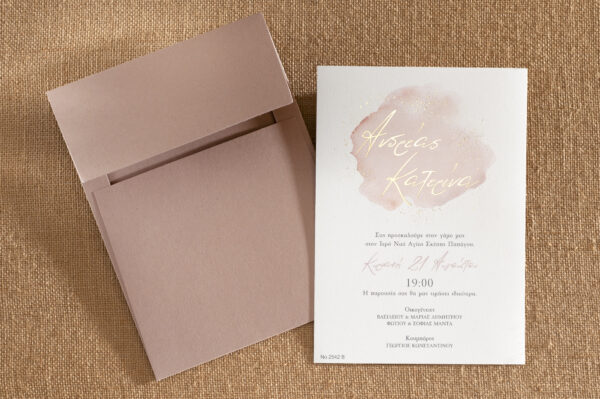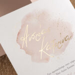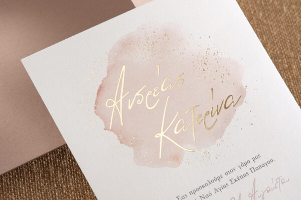 Προσκλητήριο Γάμου Watercolor με εκτύπωση Χρυσοτυπίας τα ονόματα και απλή του κειμένου.