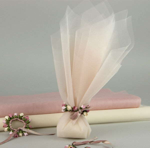 Ρομαντική μπομπονιέρα γάμου με χειροποίητο στεφανάκι με λουλουδάκια