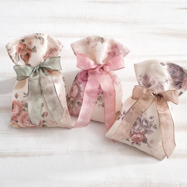 Ρομαντική μπομπονιέρα γάμου πουγκί με floral μοτίβο