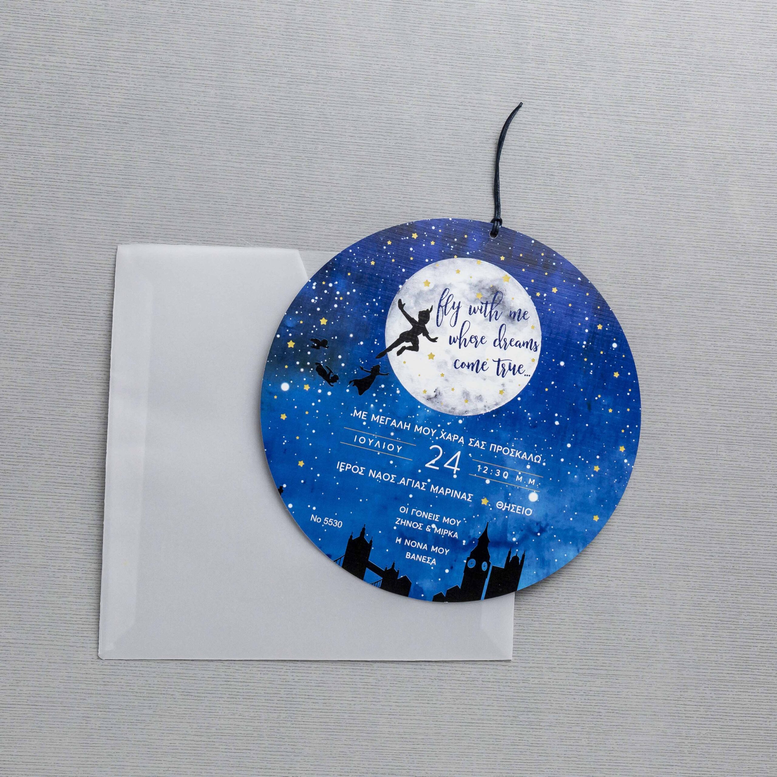 Στρογγυλό προσκλητήριο βάπτισης με διάφανο φάκελο