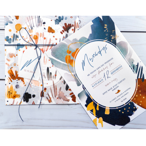 Τρίπτυχο προσκλητήριο βάπτισης με μοντέρνο print