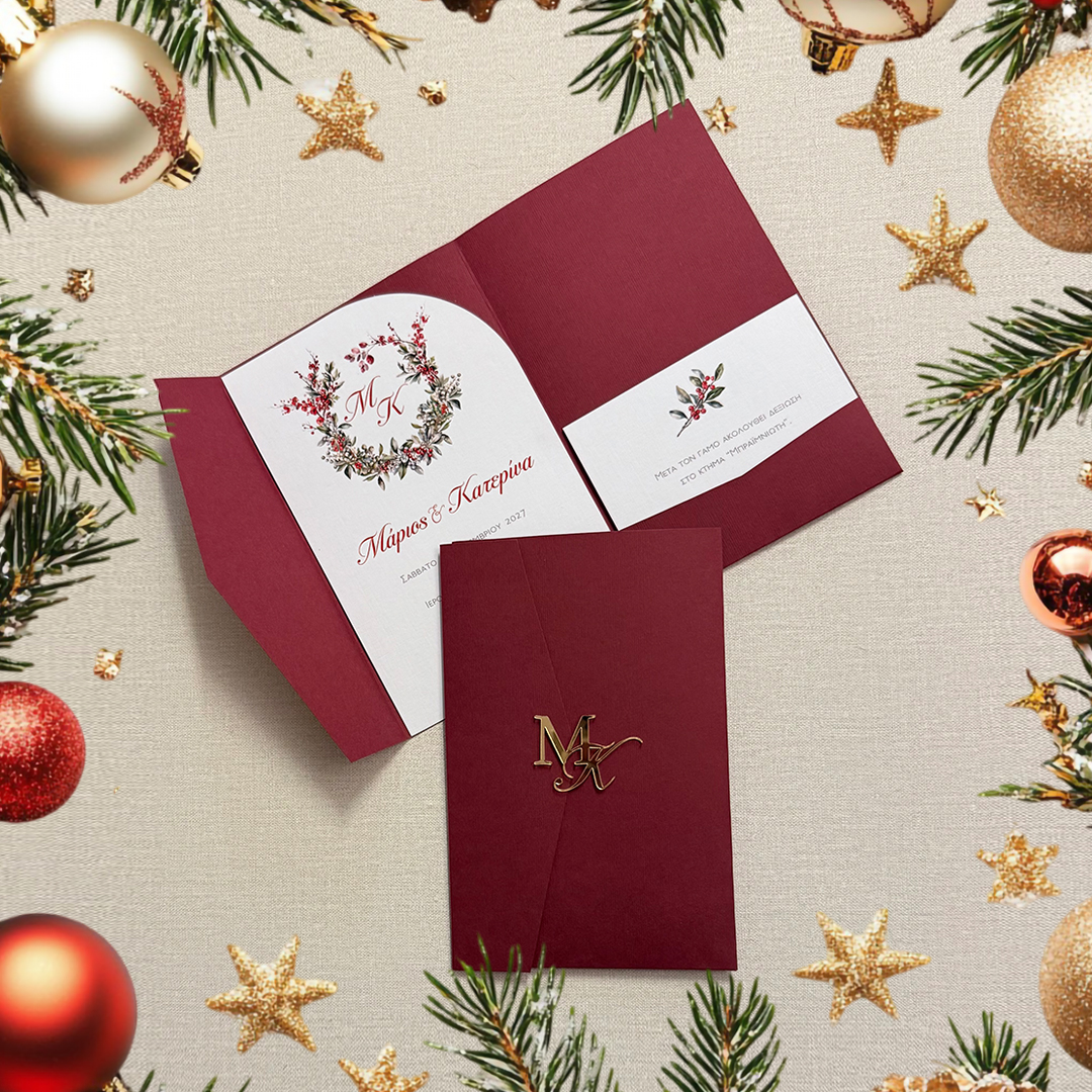 ΤΡΙΠΤΥΧΟ ΧΡΙΣΤΟΥΓΕΝΝΙΑΤΙΚΟ ΠΡΟΣΚΛΗΤΗΡΙΟ ΓΑΜΟΥ ΣΕ ΜΠΟΡΝΤΩ ΑΠΟΧΡΩΣΗ ΜΕ PLEXI GLASS ΜΟΝΟΓΡΑΜΜΑ ΣΤΟ ΚΛΕΙΣΙΜΟ