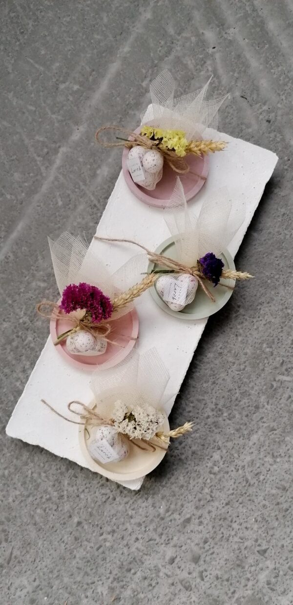 Η τιμή αφορά έτοιμη μπομπονιέρα με 5 κουφέτα αμυγδάλου ή σοκολάτας και δεν περιλαμβάνει το ΦΠΑ.