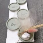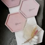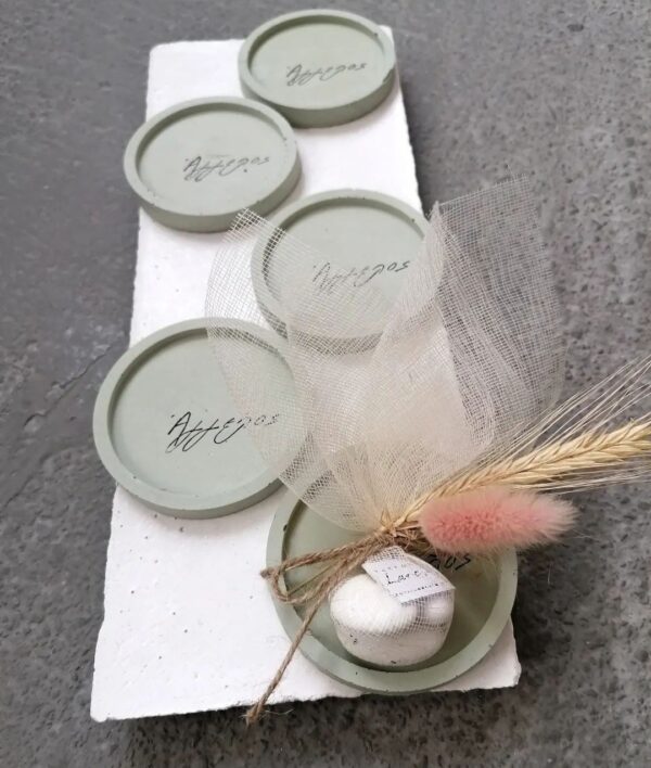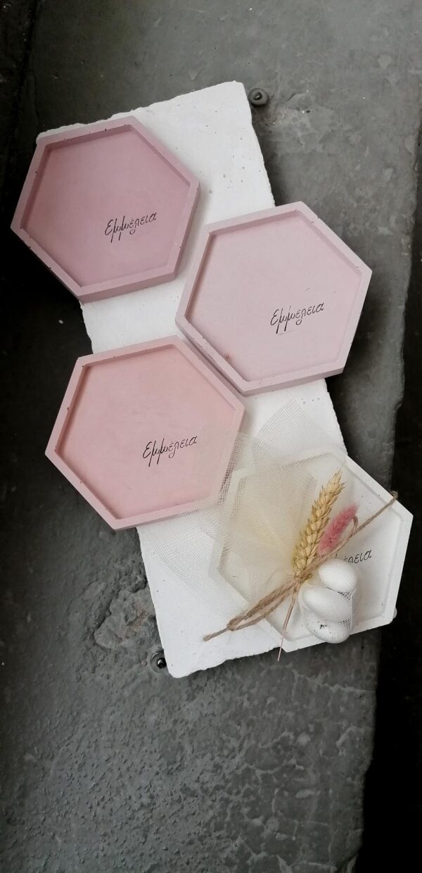 Χειροποίητη πήλινη μπομπονιέρα γάμου & βάπτισης πολύγωνο σουβέρ με εκτύπωση ονόματος