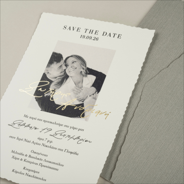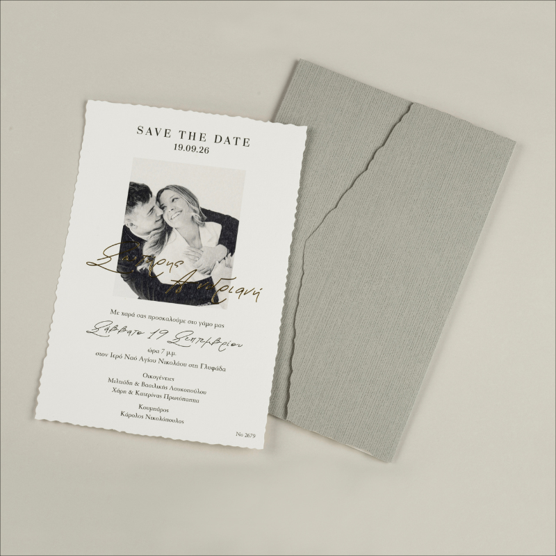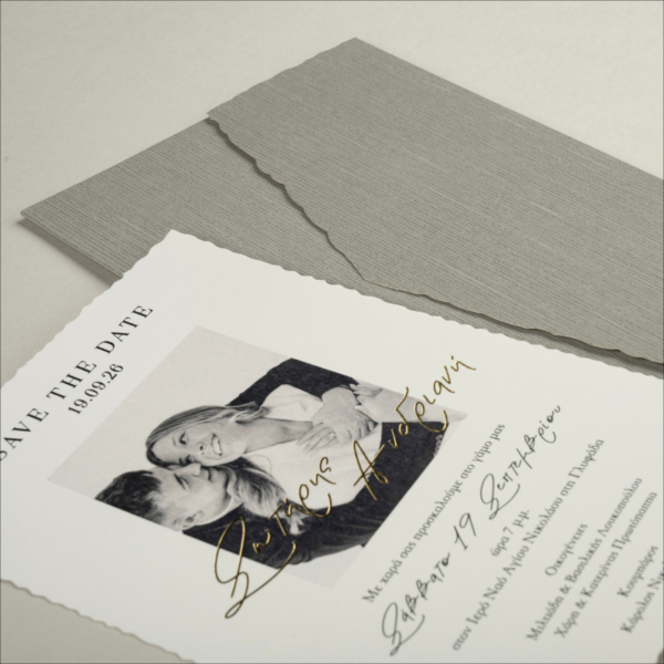 Χειροποίητο προσκλητήριο γάμου σε γκρί αποχρώσεις