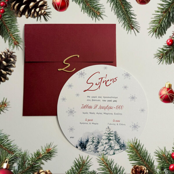 ΧΡΙΣΤΟΥΓΕΝΝΙΑΤΙΚΟ ΠΡΟΣΚΛΗΤΗΡΙΟ ΒΑΠΤΙΣΗΣ ΓΙΑ ΑΓΟΡΙ ΣΤΡΟΓΓΥΛΟ ΜΕ PLEXI GLASS ΧΡΥΣΟ ΜΟΝΟΓΡΑΜΜΑ