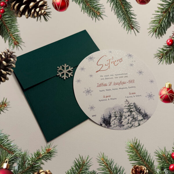 ΧΡΙΣΤΟΥΓΕΝΝΙΑΤΙΚΟ ΠΡΟΣΚΛΗΤΗΡΙΟ ΒΑΠΤΙΣΗΣ ΓΙΑ ΑΓΟΡΙ ΣΤΡΟΓΓΥΛΟ ΜΕ PLEXI GLASS ΑΣΗΜΙ ΧΙΟΝΟΝΙΦΑΔΑ