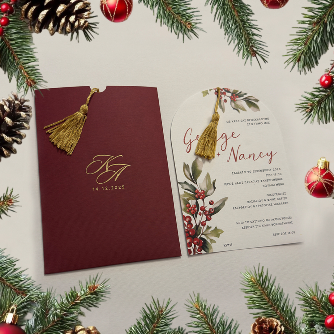 ΧΡΙΣΤΟΥΓΕΝΝΙΑΤΙΚΟ ΠΡΟΣΚΛΗΤΗΡΙΟ ΓΑΜΟΥ ΣΕ ΜΠΟΡΝΤΩ ΑΠΟΧΡΩΣΗ ΜΕ ΧΡΥΣΗ ΦΟΥΝΤΑ