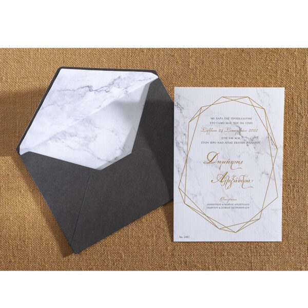 Εντυπωσιακό προσκλητήριο γάμου σε grey marble απόχρωση με ιδιαίτερη φόδρα.