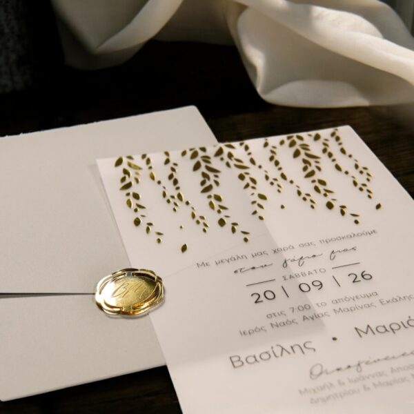Στην τιμή περιλαμβάνεται το προσκλητήριο, ο φάκελος και το plexi glass βουλοκέρι.