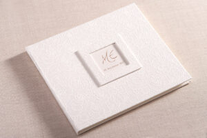 Δερμάτινο ευχολόγιο γάμου σε off white απόχρωση και χρυσοτυπία ονομάτων