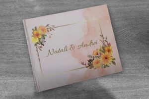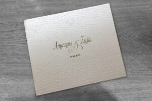 Ευχολόγιο γάμου με δερμάτινη επένδυση και τύπωμα τα ονόματα του ζευγαριού