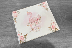 Ευχολόγιο βάπτισης για κοριτσάκι με θέμα τον κύκνο και το floral