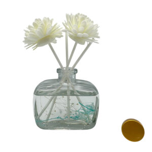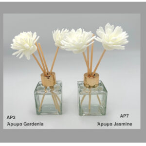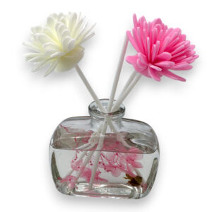 Mπομπονιέρα γάμου αρωματικό χώρου με ξύλινα sticks και λουλούδια