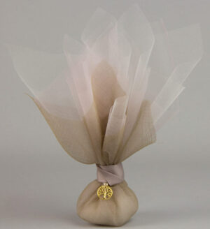 Μπομπονιέρα γάμου σε γήινες αποχρώσεις και μεταλλικό δέντρο της ζωής