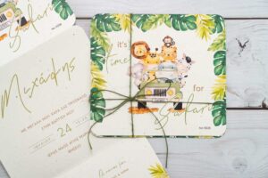 Τρίπτυχο προσκλητήριο βάπτισης με θέμα το safari
