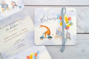 Τρίπτυχο προσκλητήριο βάπτισης με θέμα τα ζωάκια